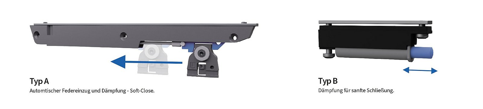 Automatischer Schließmechanismus durch Soft-Close und zwei Dämpfersysteme